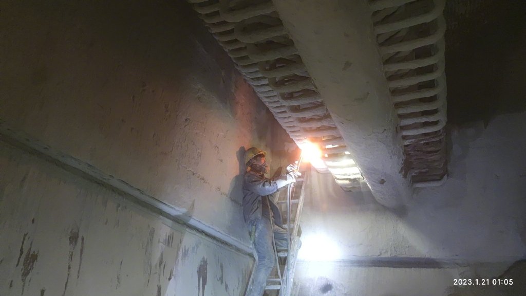 20日20点,一期1号炉炉温降到了65℃,工段长贾杰、技术员王绍飞顶着高温、大量的灰尘进入省煤器内进行检查,检查发现省煤器整体腐蚀严重,整体减薄,有多处漏点,由于情况紧急,立即召集车间主力电焊工王璐明和吕志伟先行对省煤器进行补焊,时间一分一秒过去了,由于系统复杂,处理了一宿,漏点还没有处理完。针对这种情况,李海峰主任与技术组制定了检修计划,在21号(大年三十)调动车间所有检修力量,对一期1号省煤器漏点继续进行抢修。