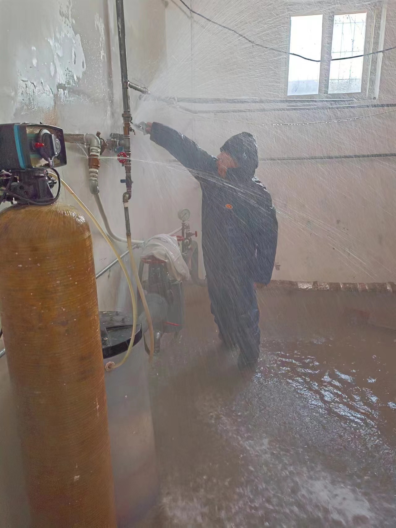 “我到了现场一看,老锅炉房内水已经铺满了!”刘杰告诉记者,他带人赶到现场一看,水流挺大。因为老锅炉房已经停用,为了寻找漏水点,他们就从隔壁的自来水泵房破门进入老锅炉房内。